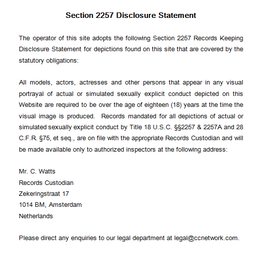 years of age or older at the time of the creation of such depictions. Compliance with 18 U.S.C. § 2257